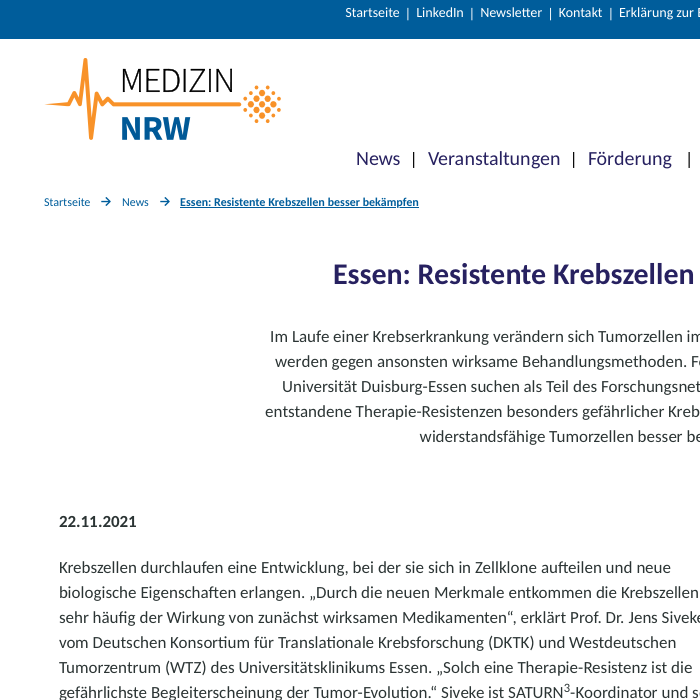 Date: Friday, 29 November 2024 from 16:00 – 19:00Duration: 180 minutes – via ZoomProvider: PEAK (Patient Expert Academy for Cancer Research; German Sarcoma Foundation), SATURN3 consortium, HEROES-AYA consortiumSpeakers: Prof Dr Stefan Fröhling, Prof Dr Peter Lichter, Dr Cindy Körner, Prof Dr Jens Siveke, Markus WartenbergParticipants: Patient representatives and patients/relatives who are already involved in cancer self-help/participation or would… Continue reading PEAK online seminar: ‘The role of tumour heterogeneity in the treatment of cancer – basics and examples’